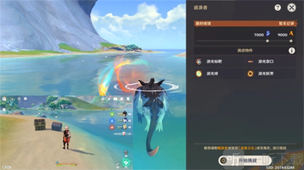 龙之魂附鳍游龙,前往河中,完成限时挑战;