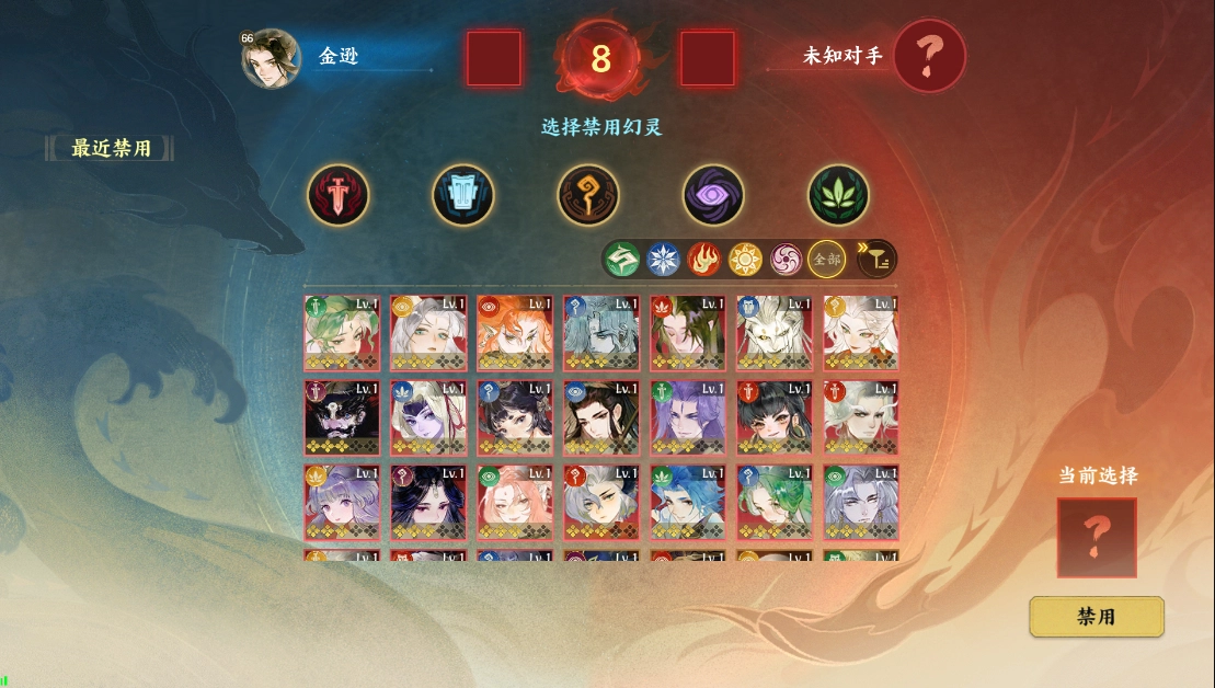 4. 【预先禁用】阶段:根据先后手顺序,双方轮流禁用一名幻灵。