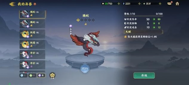 异兽不仅在升级时会为幻灵增添属性,而且每只异兽都具备独特天赋,这些天赋同样会为幻灵附加额外属性,甚至能够提升游戏中资源副本的产值。基于此,我将异兽统一划分为经济型异兽与战斗型异兽。