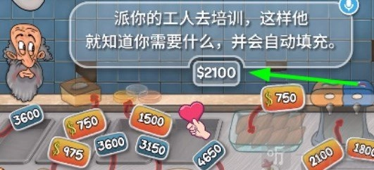4、玩家仅需花费2100金币,即可派遣一名店员参加培训。升级顺序建议为:设备>店员>饮料机>烤盘>卷饼口味。