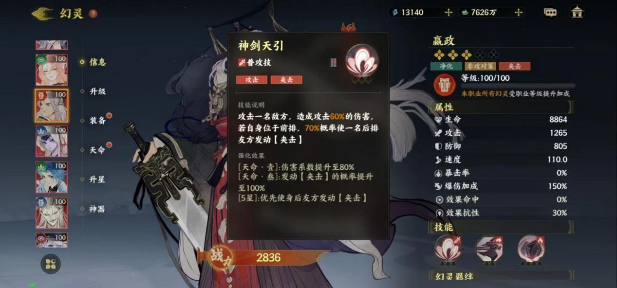 3. 涂山攸女(控场大师):拥有7星并搭配天命叁,其被动触发概率提升20%,大招所需能耗降低2点。如此一来,控制技能施展更为频繁、效果更加稳定,且启动速度更快,堪称打乱敌方节奏的核心角色。