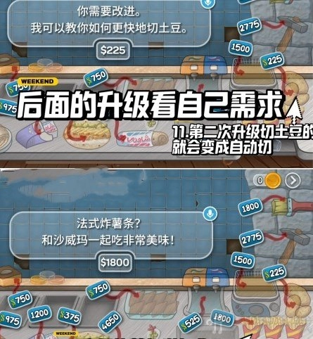 1、前期推荐优先提升橙汁和地瓜,这两者能快速积攒金币。
