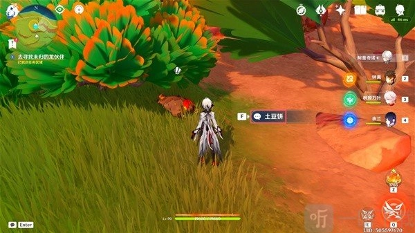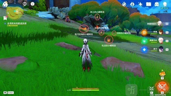 和五只小嵴锋龙交谈完毕后,派蒙便会提醒我们,旁边的草丛似乎有动静,我们直接过去瞧一瞧。