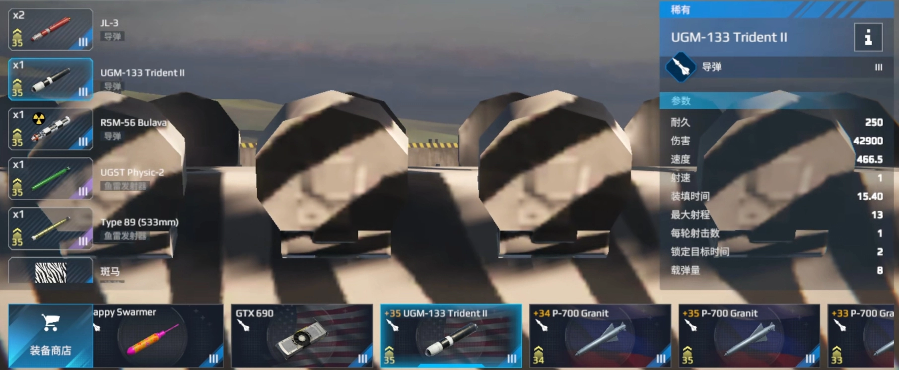 有一种较为特殊的潜艇用导弹,其装填速度与射速都极快。即便它整体造成的伤害相对偏低,却依然能给敌人制造极大的困扰,特别适合采用游击路线的潜艇使用。