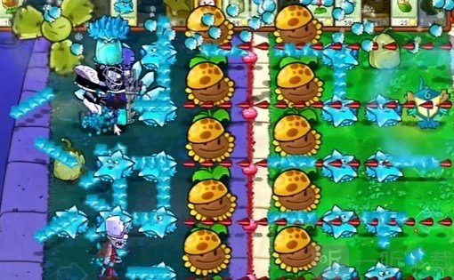 3. 接着在左右两边多种植几个寒冰星星,于左侧再补上一个寒冰菇。