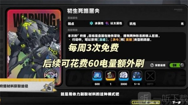 【周本材料获取】恶名狩猎依旧保留3次免费的挑战获取资源次数,并允许玩家消耗60体力获取额外周本刷取次数,缩短养成时间。