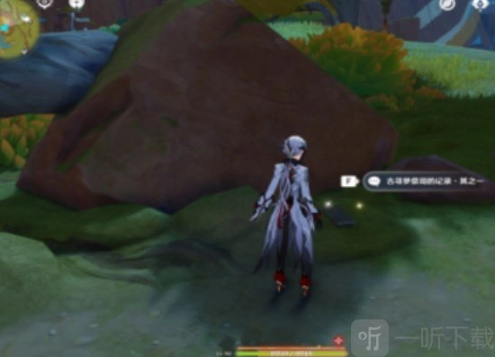 1、首先,我们需前往下图所标注的位置。抵达该位置后,将会触发一段对话。待对话中的故事情节结束,便能收集到古寻梦祭祀的记录其一。