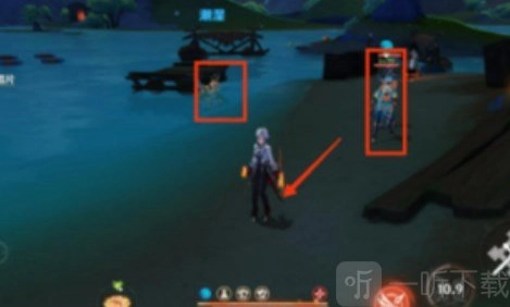 4、紧接着,我们继续追踪任务,前往海滨区域,找到NPC并与之对话。