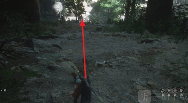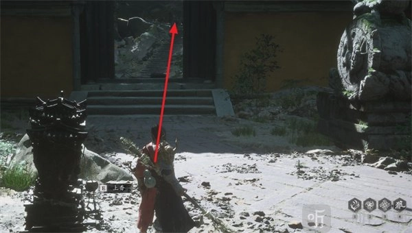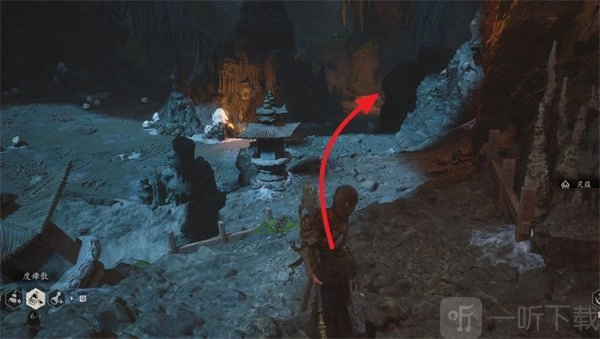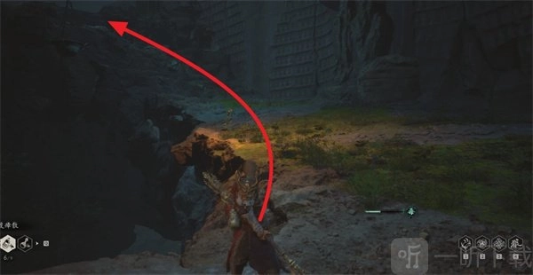 从第四回【盘丝洞 - 上层】的土地庙启程,朝着土地庙正后方的斜坡向上行进,随后顺着道路往下走,紧挨着右侧岩壁前行。