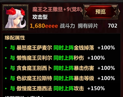 主力是撒旦,其缘配共有六个英雄。总共分成三组,另外七组中有绝世搭配的一组,成员是后裔与神农。