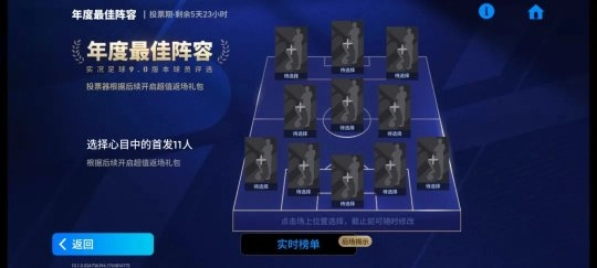 投票活动结束后,系统会依据各位置得票最多的球员来确定最终的年度最佳阵容并予以公示。公示期结束后,这套最佳阵容将在之后重新登上实况赛场!