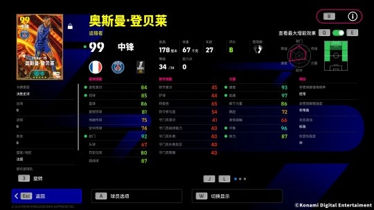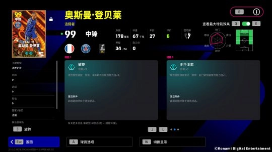 登贝莱增能属性为【敏捷 +3】,再加上【瞬间加速】特殊技能,这位巴黎新王能用令对手猝不及防的爆发力完成突破,将防线摧毁殆尽!