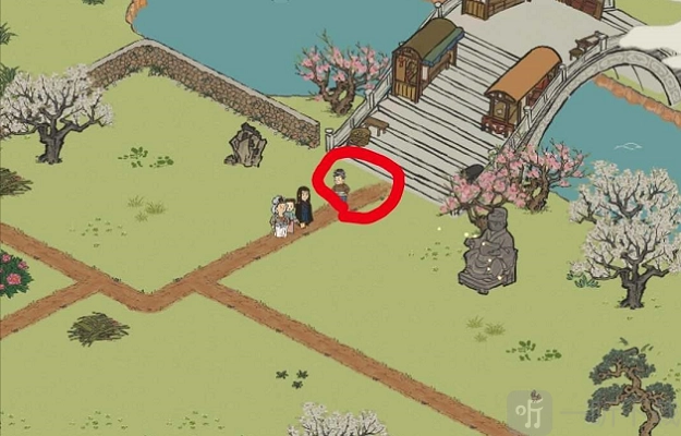 你能瞧见两个灶王爷,接着朝右边行进,在最右下角画室灯笼店的附近便是小树林,点击砍伐小树林,就能获取铲子。
