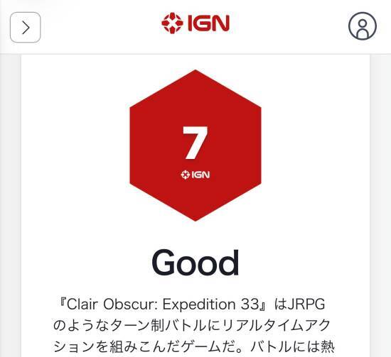 游戏发售之际,IGN Japan 曾为《光与影:33号远征队》打出7/10的评分,这一分数相对中规中矩,代表着“良好”的评价。
