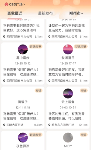 并且还能够查看最新发布的信息,借助这些信息来获取不同的帮养信息并提供帮助;