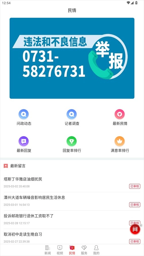 这里的“民情”涵盖了湘潭本地居民的各类需求,无论是遇到什么问题,都能直接拨打这个电话,也可以在线上提交相关需求,我们会为您解决生活中碰到的问题。