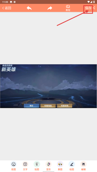 3、进入模板编辑页面后,点击右上角的保存按钮,即可将编辑好的图片保存下来。