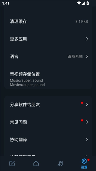 3、剪辑的音乐文件可以在我的设置里面看到具体的文件位置。