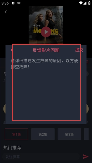 4、若发现影片存在问题,可点击【反馈】,在反馈影片问题页面详细描述故障原因,以便排查故障。