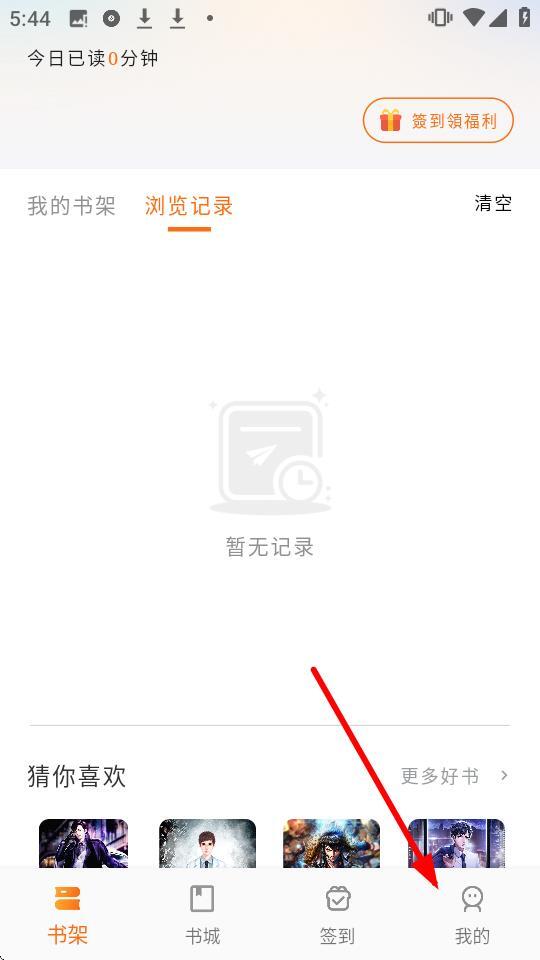1. 于应用书架页面,轻点右下角的【我的】按钮,即可进入个人中心页面。