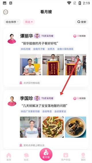 筛选完成后,页面会呈现出符合条件的月嫂,点击就能进入详情页面。