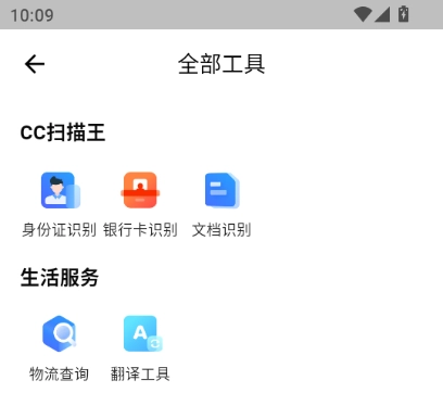 点击“cc精选”“cc扫描王”或“生活服务”选项,即可使用对应的工具。