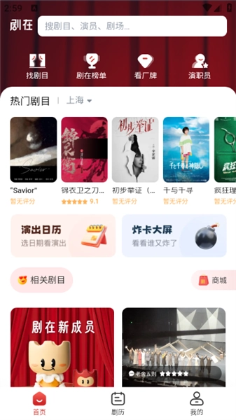 1,首页提供最新的剧目信息与动态评价