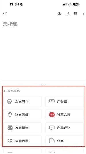 5、点击加号按钮,再点击AI写作选项,这里为大家准备了非常多的AI写作模板,无需额外操作即可直接使用。