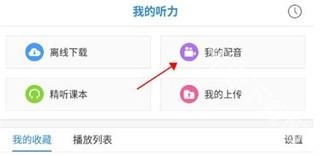 1、进入后,在底部菜单栏找到“我的听力”选项,点击进入该页面,然后找到“我的配音”入口。