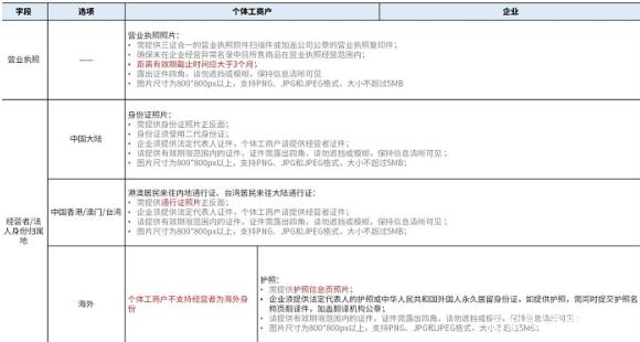 - 现阶段仅支持企业或个体入驻,不支持以个人身份入驻。