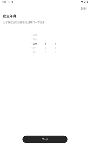 登录操作完成后,需要补充填写出生日期、性别以及身高这些个人基本信息。