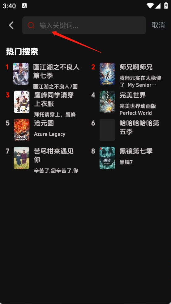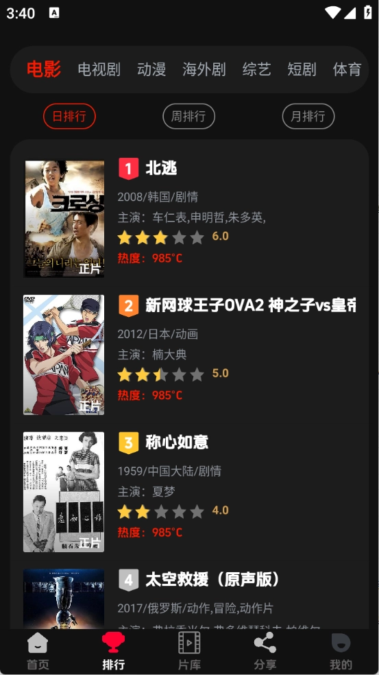 排行页面将影视根据当前热度进行了整理排序。