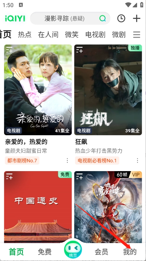 进入爱奇艺首页之后点击点击右下方“我的”。