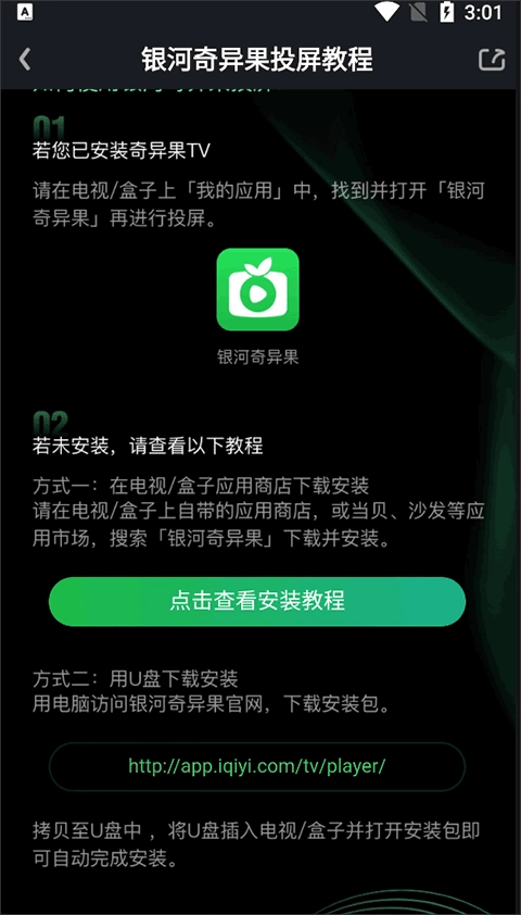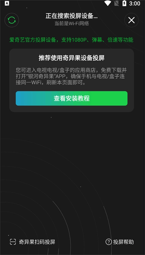 在这里就能完成投屏操作,投屏的方式包括扫码以及系统默认的搜索发现功能。