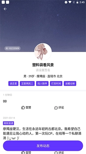 1、准确匹配:基于资料算法匹配CP,就近同城交友,配对后交友率高。