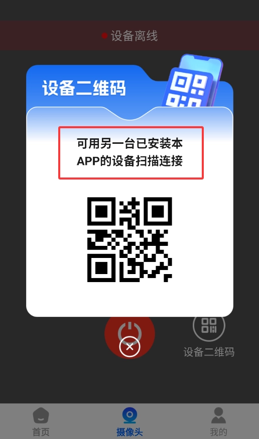 进入设备管理页面后,找到并点击添加摄像头的选项,接着在配对方式中选择二维码模式来完成后续操作。