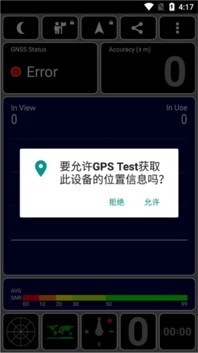点击进入GPSTest页面;可以看到首先要求打开GPS,通过在手机设置项里打开GPS功能;