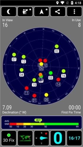 4、在天空中的卫星位置(华庭),显示在一个旋转的罗盘。