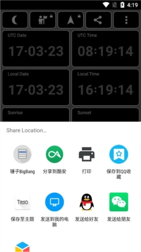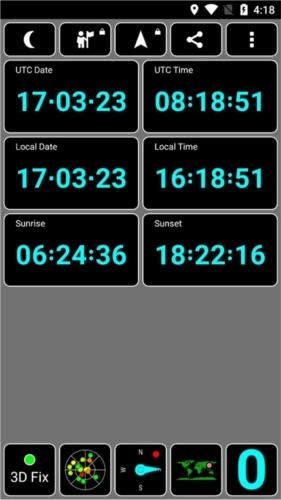 5、从GPS和在你的目前时区的手机时间,以及您的位置日出和日落时间读目前时间。