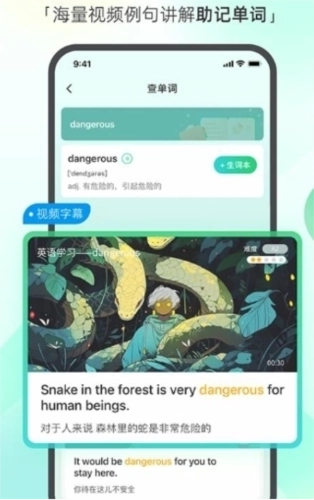 5,影视动漫词典:汇聚海量视频例句来讲解和助记单词,借助生动形象的视频例句,让你轻松掌握单词含义。