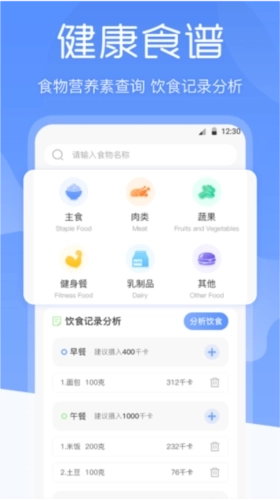 涵盖了各大食物的数据热量库,可以随时查询热量数据