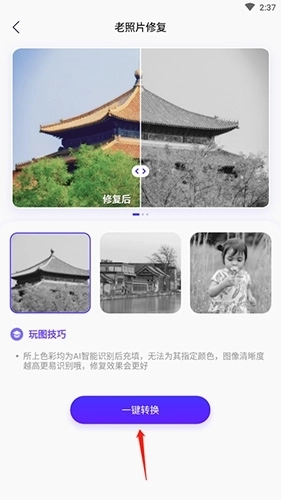 2、点击“一键转换”选项,选择需要修复的照片就可以了。