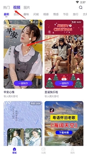 1、打开软件,点击“视频”选项,选择合适的模板。