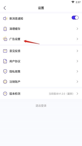 2、找到并点击“广告设置”这一选项,勾选关闭个性化选择的选项就能减少广告推送了。要是想完全摆脱广告的话,则需要升级成为会员。