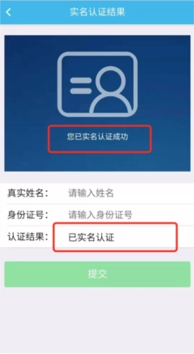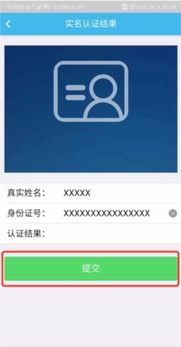 2、进入实名认证页面,准确填写各项相关信息后,点击“提交”按钮