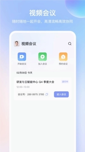 3、简单易用、高清流畅、安全可靠的云会议协作平台。