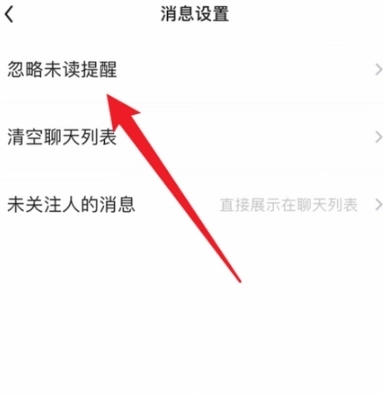 3、进入消息设置页面后,点击“忽略未读提醒”按钮。