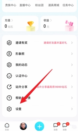 1、在喜弟【我的】页面,找到“设置”,点击它。