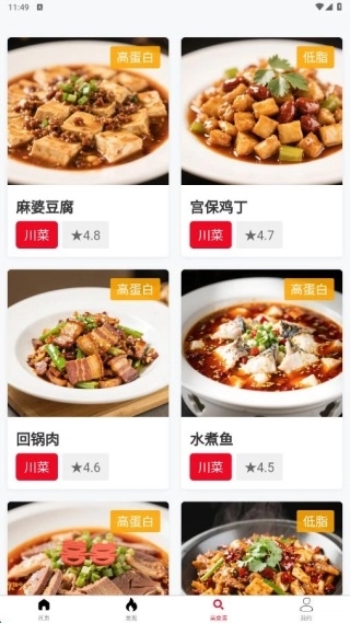2、发现页面陈列着各类不同主题的菜品信息,方便用户轻松浏览。