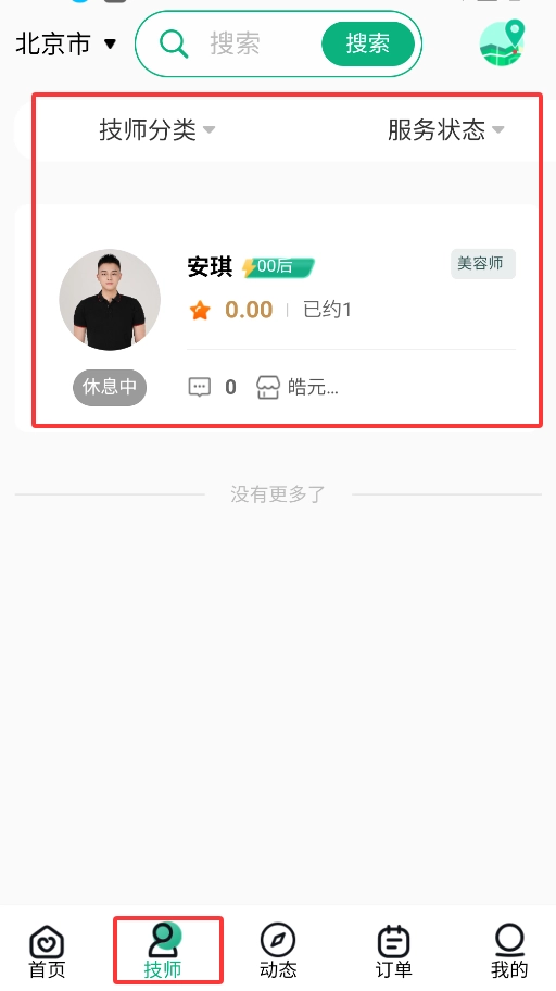 进入“技师”页面后,就能查看所有可预约技师的相关信息,像评分、服务项目这类详细内容都能浏览到。